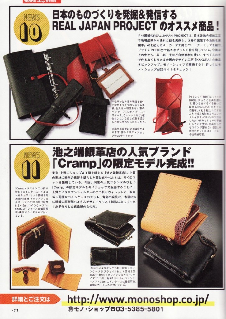 雑誌「monoマガジン別冊・職人モノ」no3に弊社PRブランド「cramp」の革小物とサンドキャスト職人Haru氏がご掲載いただきましたのでご案内。