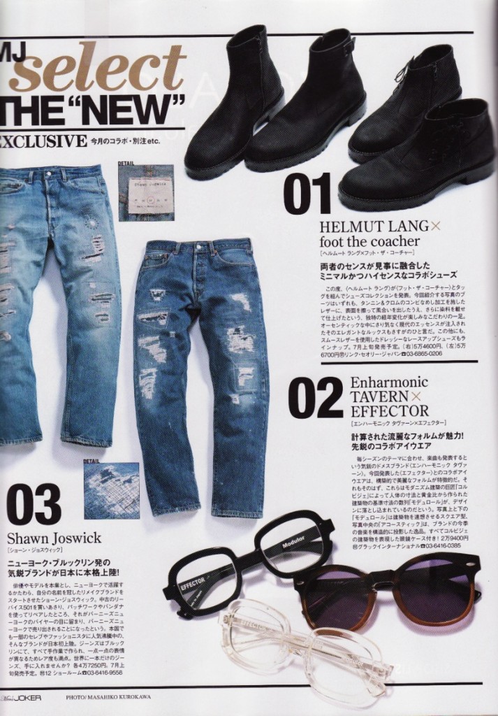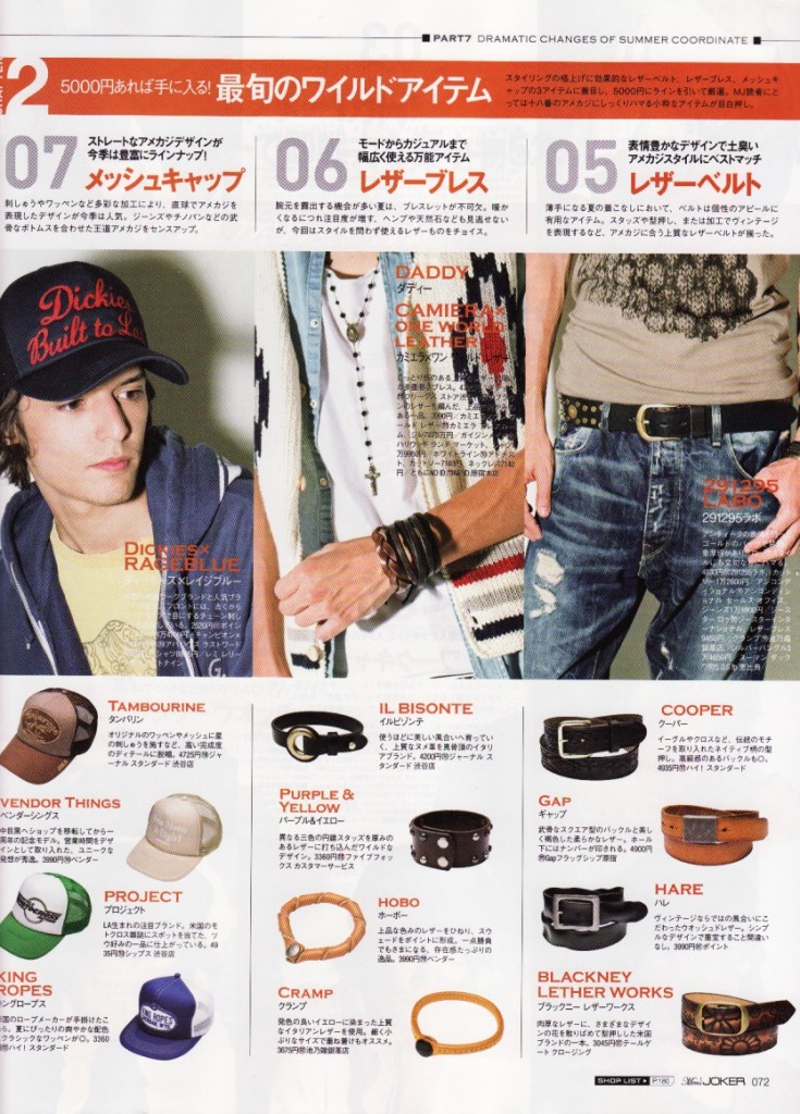 雑誌「Men’s JOKER」8月号に弊社PRブランド「cramp」の革小物、「Enharmonic Tavern」のエフェクターコラボ眼鏡、大阪発ディア ディア デプトのバック、「群馬発イチミリ」のパンツ、「大阪発ヴォレー・ドン・レ・シェル」のパンツがご掲載いただきましたのでご案内。