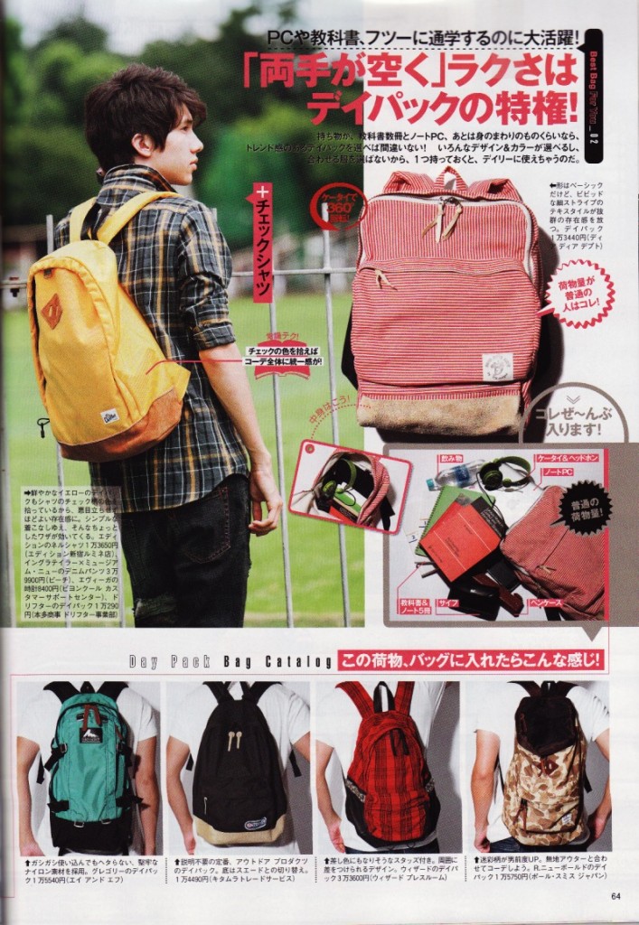 雑誌「FINE BOYS」9月号に弊社PRブランド大阪発ディア ディア デプトのバック、「Enharmonic Tavern」のシャツ、「群馬発イチミリ」のパンツがご掲載いただきましたのでご案内。