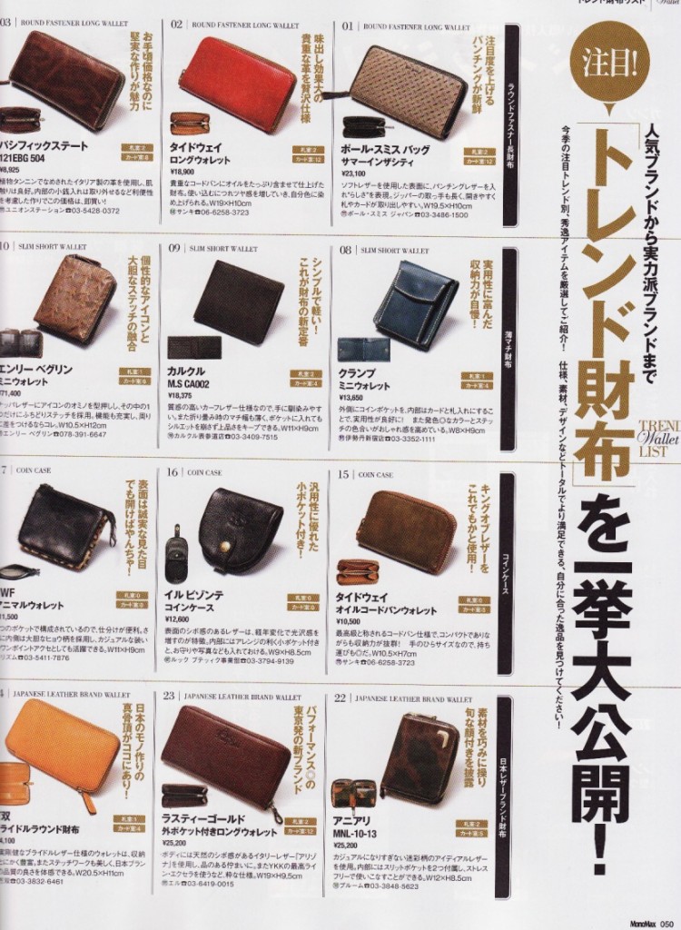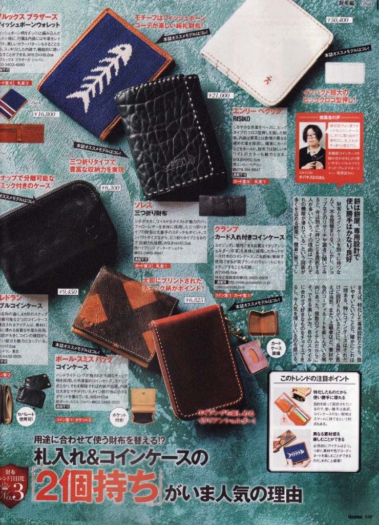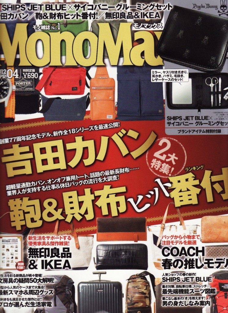 雑誌「 Mono Max 」4月号に弊社PRブランド「cramp」革小物をご掲載いただきましたのでご案内。