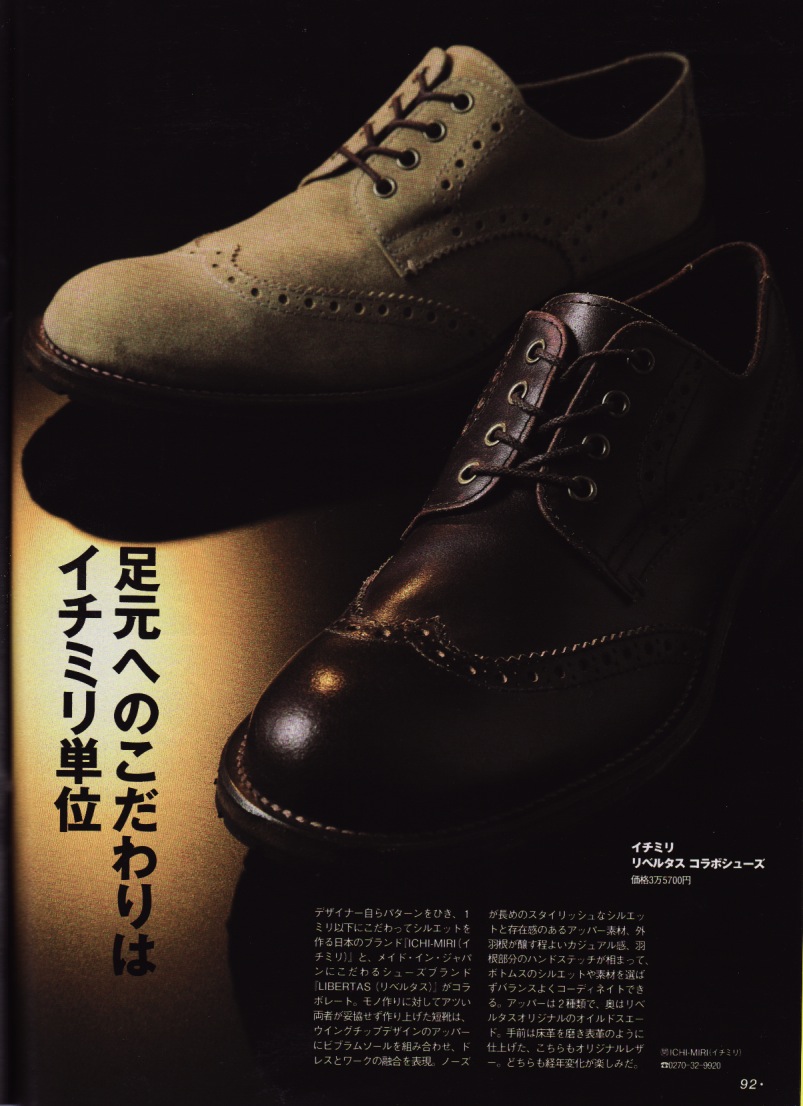 雑誌「momoマガジン」2.16号に弊社PRブランド「ICHI-MIRI」とシューズブランド「LIBERTAS」とのコラボレーションの短靴が1Pご掲載頂きましたのでご案内。