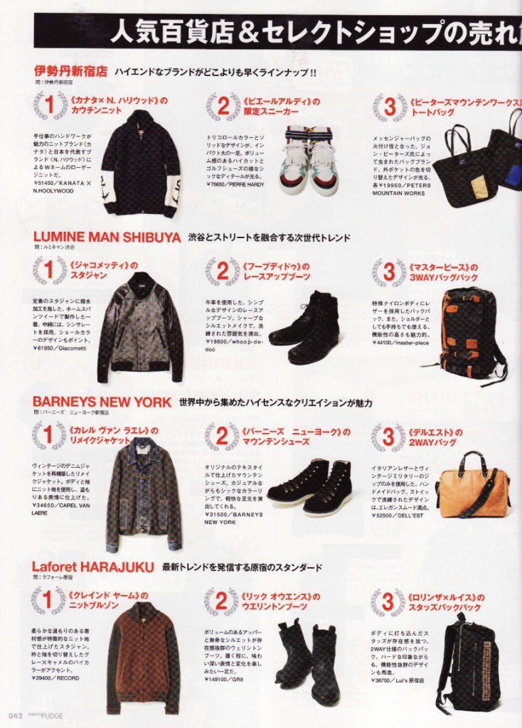 雑誌「 men’s FUDGE 10月号に弊社PRブランドが盛りだくさんご掲載いただきましたのでご案内。