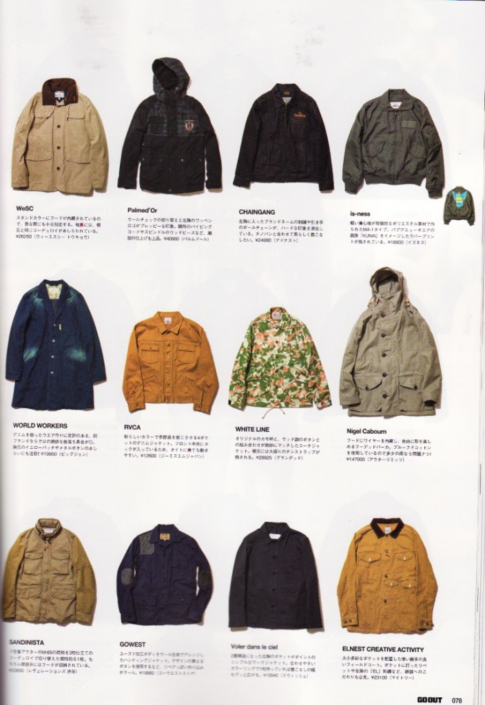 雑誌「 GO OUT」10月号に弊社PRブランドVoler dans le cielのワークジャケットをご掲載いただきましたのでご案内。