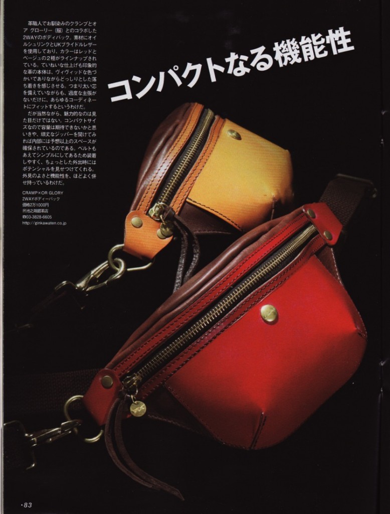 雑誌「 mono 」no.686号に弊社PRブランドcramp x OR GLORYコラボ2WAYバックを1Pご掲載いただきましたのでご案内。