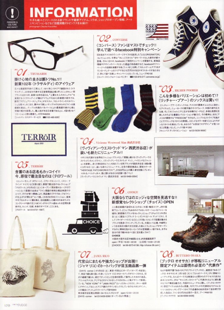 雑誌「 men’s FUDGE 」5月号に弊社PRブランドが盛りだくさんご掲載いただきましたのでご案内。