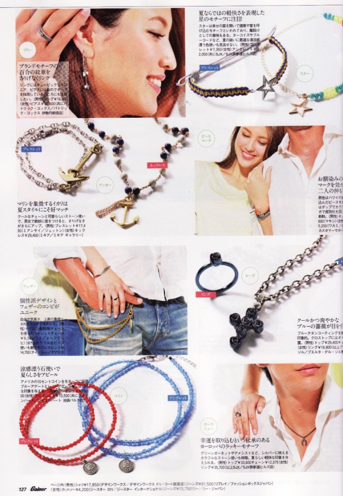 雑誌「 Gainer 」7月号に弊社PRブランドwhYのアクセサリーをご掲載いただきましたのでご案内。