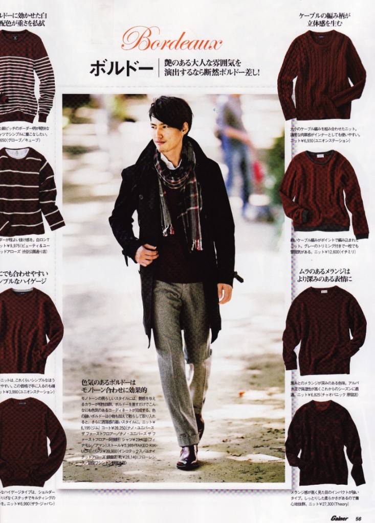 雑誌「 Gainer 」12月号に弊社PRブランド「群馬発イチミリ」のニットをご掲載いただきましたのでご案内。