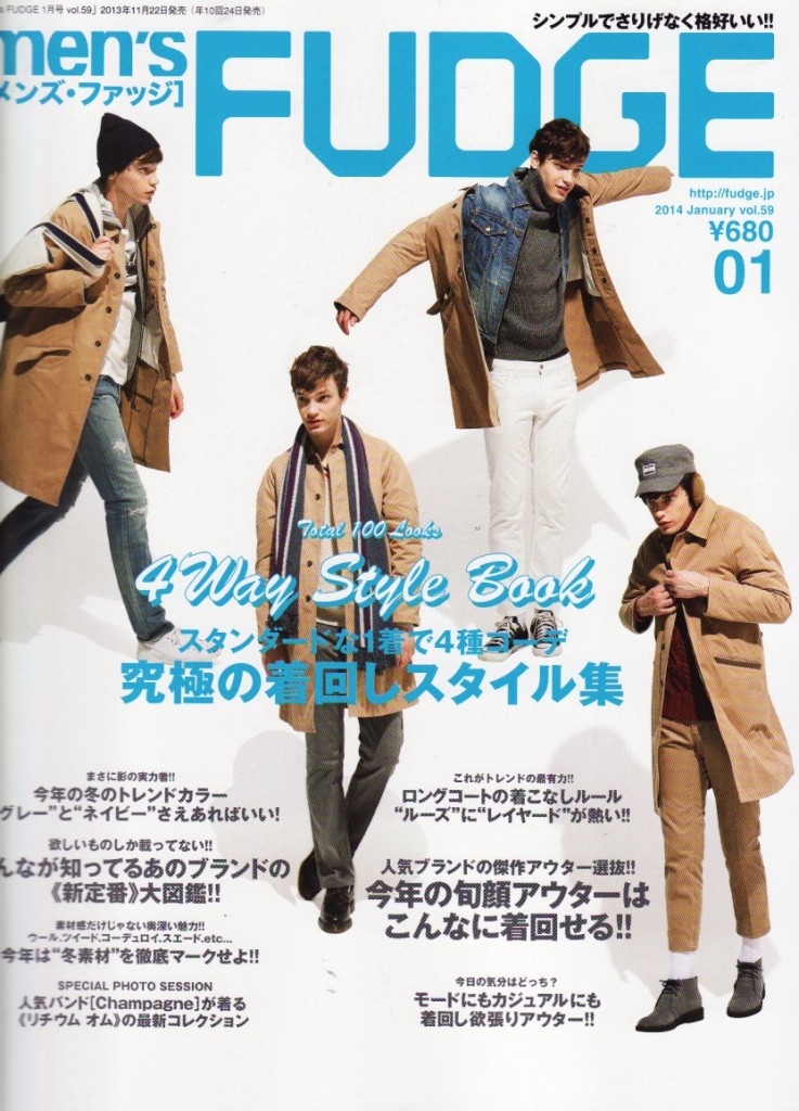 雑誌「 men’s FUDGE 1月号に弊社PRブランドが盛りだくさんご掲載いただきましたのでご案内。