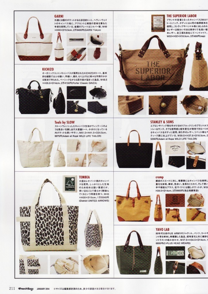 雑誌「 Free & Easy 1月号に弊社PRブランド池之端銀革店オリジナルcrampのトートバックをご掲載いただきましたのでご案内。