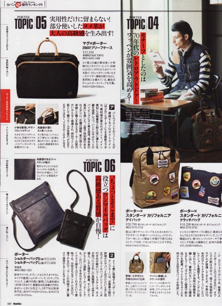 雑誌「 mono MAX 」2月号に弊社PRブランドMUG x 吉田(PORTER)ご掲載いただきましたのでご案内。