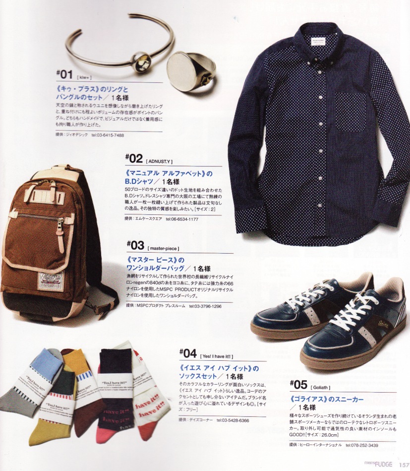 雑誌「 men’s FUDGE 」4月号に弊社PRブランドが盛りだくさんご掲載いただきましたのでご案内。