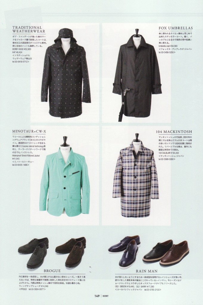 雑誌「 HUNT 」Vol.4に弊社PRブランドから雨の日を快適に過ごせるアイテムをご掲載いただきましたのでご案内。